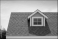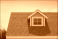 Roof shingles with garret house on top of the house among a lot of trees. dark asphalt tiles on the roof background