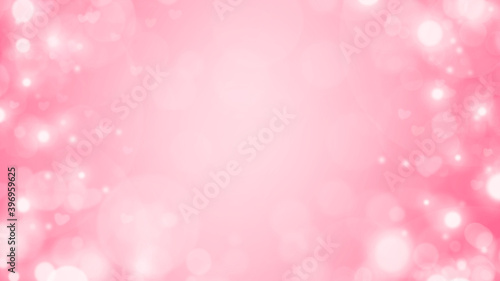 Fototapeta - Valentines day pink bokeh background with soft hearts and circles