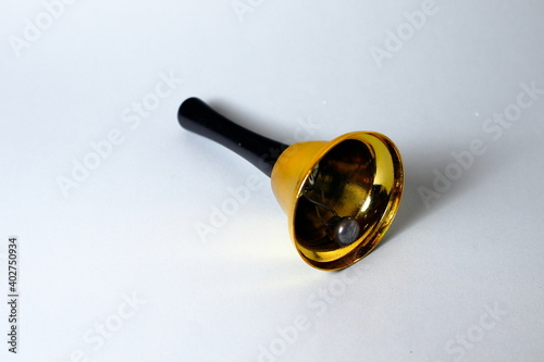 Fototapeta - złoty dzwonek Mikołaja na białym tle