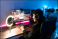 Fototapeta - Excited young gamer winning on a videogame while live streaming