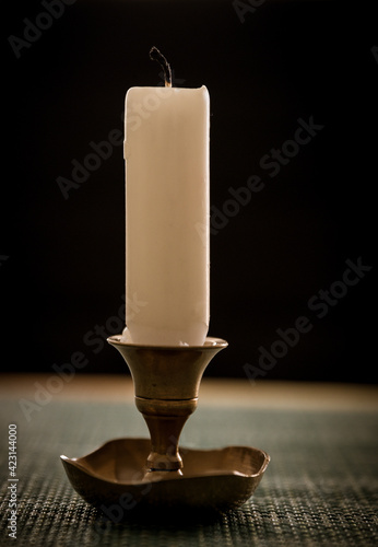 Fototapeta - zgaszona świeca na świeczniku na czarnym tle