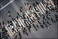 >Naklejka na meble>Different people at a pedestrian crossing in the city. People at a zebra pedestrian crossing - a lot of pedestrians in an overcrowded city on a sunny day. Aerial drone shot.