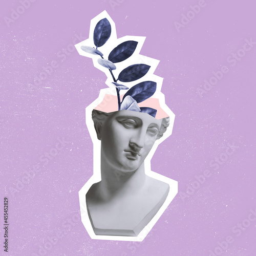 >Naklejka na meble>Contemporary art collage, modern creative design. Composition with bust of ancient statue and branch of tree. Idea, inspiration, saving environment, environmental care, ecology.