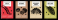 Fototapeta - Chilli, nutmeg, mustard seeds, bay leaf. Set of posters of spices and herbs in a abstract draw design. Label or poster for food preparing and culinary. Simple, flat design. For poster, cover, banner.