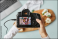 Top view close up of food photographer holding digital camera with image on screen while working in home studio, copy space