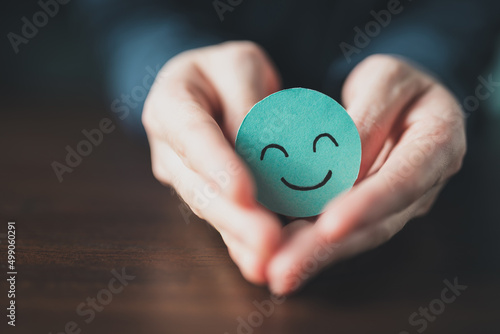 Fototapeta - Mental good health Psychology positive emotion human, good feedback rating ,positive customer review,hand love shape