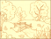 Landscape nature, garden with trees and river. Wooden bridge. Children coloring book.