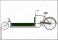 Klasyczny rower transportowy typu "long john" na białym tle.