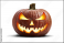 A single lit spooky halloween pumpkins, Jack O Lantern with evil face and eyes isolated against a transparent background.