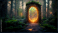 >Naklejka na meble>Spectacular fantasy scene with a portal archway covered in creepers. In the fantasy world, ancient magical stone gate show another dimension. Digital art 3D illustration.