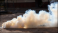 Mocny biały dym leci z wojskowej świecy dymnej.