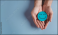 >Naklejka na meble>Hands holding blue happy smile face, good feedback rating, positive customer review, experience, satisfaction survey, smiley mental health, child wellness, world mental health day on blue background