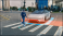 >Naklejka na meble>Self-Driving 3D Car Concept: Person Steps on a Crosswalk, Autonomous Vehicle Stops Before Him. Visualization of Safety Features: Scanning Surroundings, Detecting Pedestrian, Stopping before Crosswalk