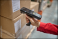 Fototapeta - Warehouse employee scanning packaging information using a scanner