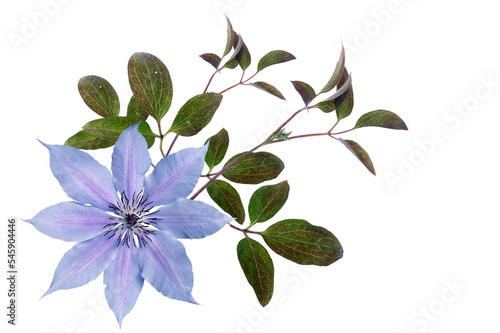 Blue clematis with leaves on a transparent background