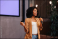African businesswoman talking to the public over the microphone, giving the lecture.