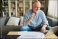 Fototapeta - Senior macht Buchhaltung oder arbeitet an Steuererklärung