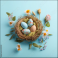 Happy Easter concept with easter eggs in nest and spring flowers. Easter background with copy space. Generative AI