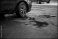 Fototapeta - Ogromne dziury w nawierzchni i przejeżdżające samochody