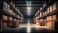 A large, long logistics warehouse filled with boxes, parcels and merchandise, Generative AI