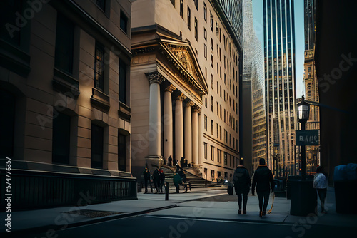 Wall Street in the Financial District of Lower Manhattan in New York City, Ai Generative illustration.