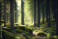 scandinavian forest with many trees, lots of green moss made with Generative AI