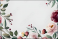 Akwarelowa rama w kwiatowy deseń, liście, różowe kwiaty, delikatny florystyczny wzór, miejsce na tekst, na zaproszenia, uroczystości, wesele, życzenia, zaproszenia.