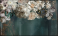 Spectacular 3D oil painting flowers on the turquoise abstract background.