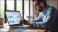 >Naklejka na meble>Data analysis to increase sales and revenue. Man sitting with laptop and working with growing graph. Business data analytics concept. Generative ai..
