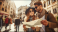 Young couple in Rome. Boyfriend and girlfriend holding city map visiting the beautiful italian city at holiday moment