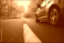 car on the road in the autumn forest. speed motion blur effect
