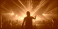 >Naklejka na meble>Techno rave party club. DJ booth in front of dancing party people. Electronic music, techno or raving in laser spotlight. Night club crowd dance with hands up in cgreen neon lights