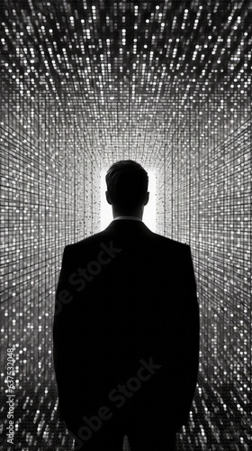 Fototapeta - artystyczna sztuka komputerowa człowieka wypranego przez system i telewizję, martwica mózgu