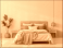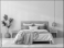 >Naklejka na meble>Minimalist beige boho bedroom with empty whate wall for mockups. Wooden double bed with pillows, cozy furniture. Room interior with copyspace.