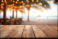 Fototapeta - Wooden table and blur beach cafes background with bokeh lights. High quality photo