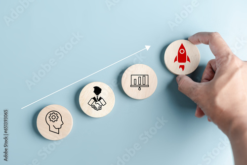 Business growth success achievement PDCA concept, step stair or ladder for planning development leadership and customer target group....