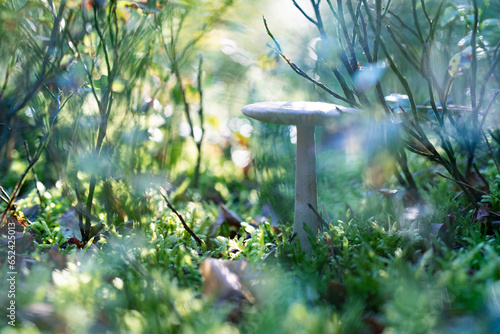 Fototapeta - Czarujący świat grzyba w gęstej trawie