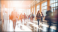School busy hallway with students in blurred motion