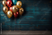Kolorowe błyszczące balony na tle ciemnoniebieskiej ściany.