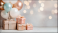 Fototapeta - Tło z prezentami i balonami w delikatnych pastelowych odcieniach różu