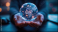 >Naklejka na meble>Pair of hands holding a transparent globe with digital connections and nodes superimposed over it, representing a network, global communication