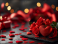 Fototapeta - Zdjęcie przedstawiające harmonijne połączenie pięknych czerwonych róż i serc, tworzących razem romantyczną całość.