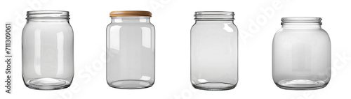 Fototapeta - empty glass jar set, canning and preserving. With cover and without lid. ,isolated on a transparent background, PNG, cutout, or clipping path.