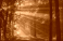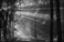 Fototapeta - Sun rays shining through the trees in the forrest.