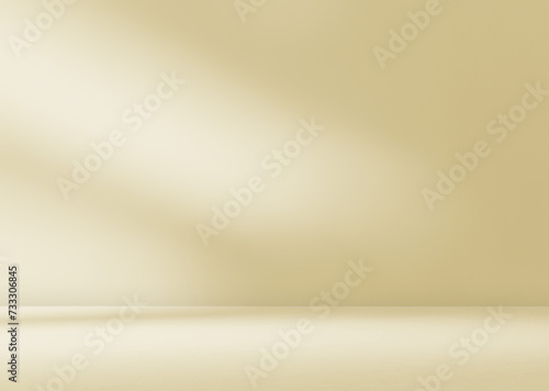>Naklejka na meble>Empty cream beige golden room studio with shadow of leaves for product presentation. Autumn background. Summer tropical backdrop. Cosmetic showroom.