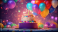 W obrazie widoczny jest tort urodzinowy otoczony balonami i konfetti.