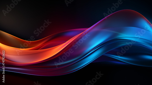 Abstrakcyjna tapeta - nowoczesna fale z cieniem i światłem oraz kolorową wiązką światła na czarnym tle