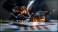 Business concept. The manager controls the company shares. Company's profit and loss statistics.