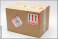 paczka kurierska, pakowanie karton z taśmą z nadrukiem Ostrożnie nie rzucać.