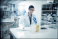 >Naklejka na meble>Woman, vial or scientist in laboratory for science innovation, life expectancy or antiaging medicine. Futuristic, medical test or healthcare biologist with chemistry liquid in research or examination